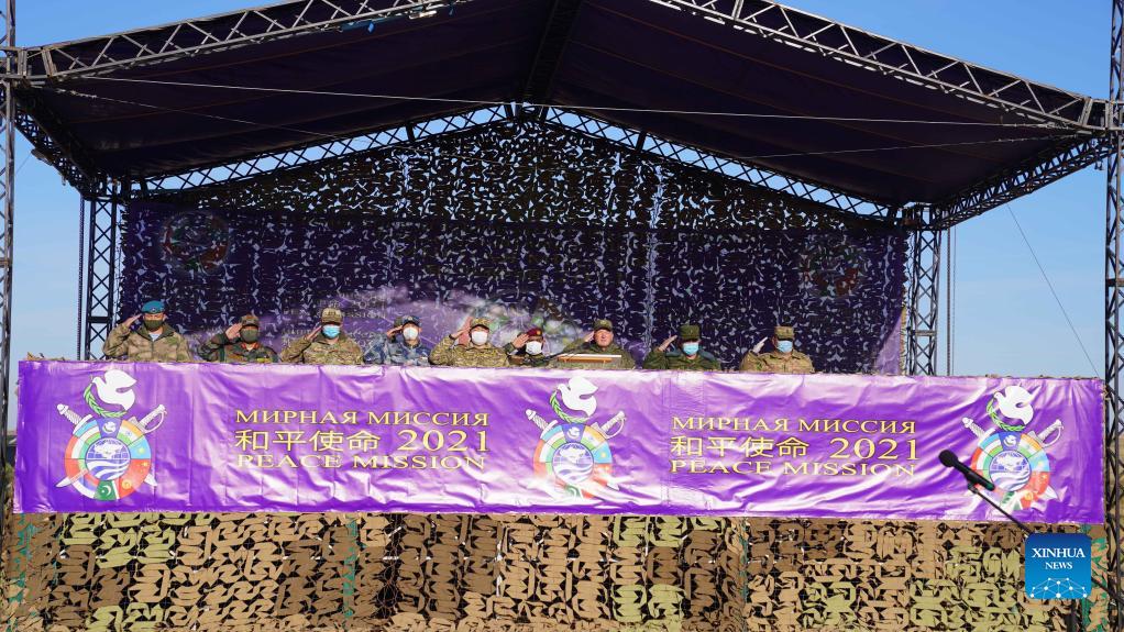 The opening ceremony of the "Peace Mission 2021," a counter-terrorism military exercise for Shanghai Cooperation Organization (SCO) member states, is held at the training range in Orenburg, Russia on Sept. 20, 2021. (Xinhua/Mei Shixiong)