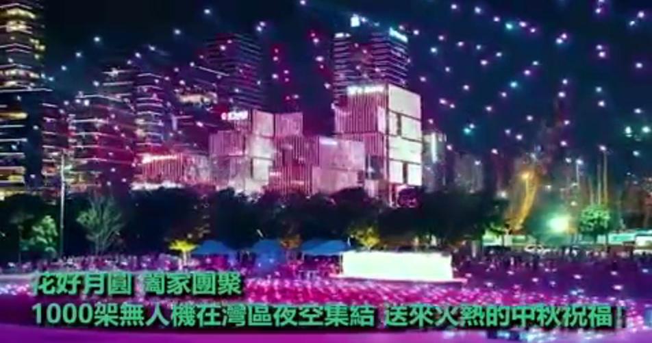 1,000 drones assembled in the sky of the Guangdong-Hong Kong-Macao Greater Bay Area to celebrate the Mid-Autumn Festival on Tuesday evening.