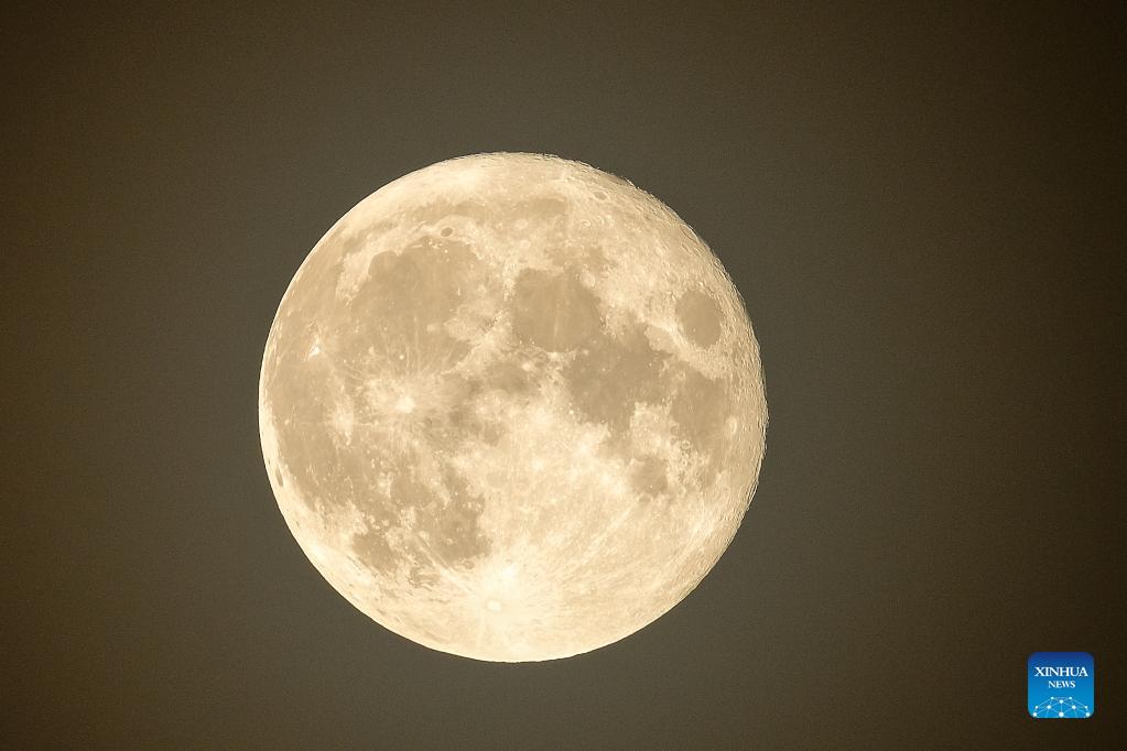 Photo taken on Sept. 21, 2021 shows a full moon in Brussels, Belgium. (Xinhua/Zhang Cheng)