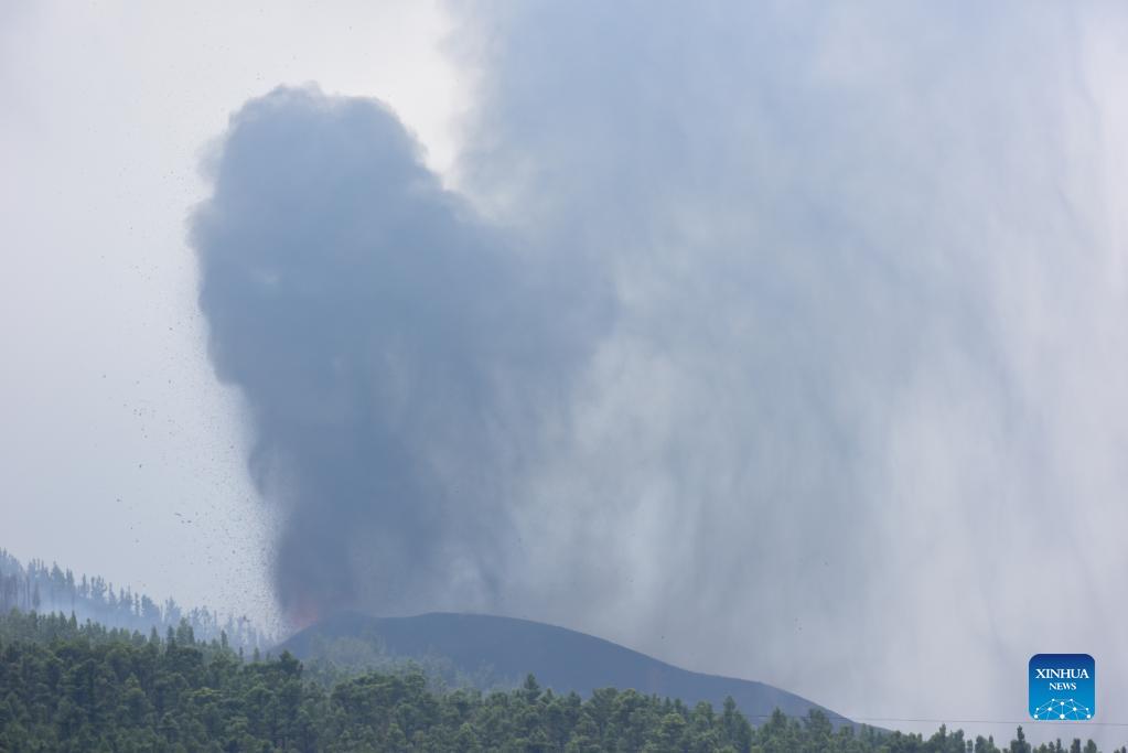 Photo taken on Sept. 21, 2021 shows the eruption of the Cumbre Vieja volcano on the island of La Palma in the Canary Islands, Spain. The eruption of the Cumbre Vieja volcano is expected to last between 24 and 84 days, the Volcanology Institute of the Canary Islands (INVOLCAN) said on Wednesday. (Photo by Gustavo Valiente/Xinhua)