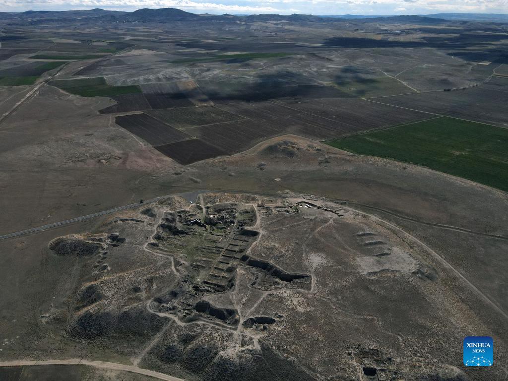Aerial photo taken on Sept. 22, 2021 shows the ancient city of Gordion, located about 70 km southwest of the Turkish capital Ankara. (Photo by Mustafa Kaya/Xinhua)