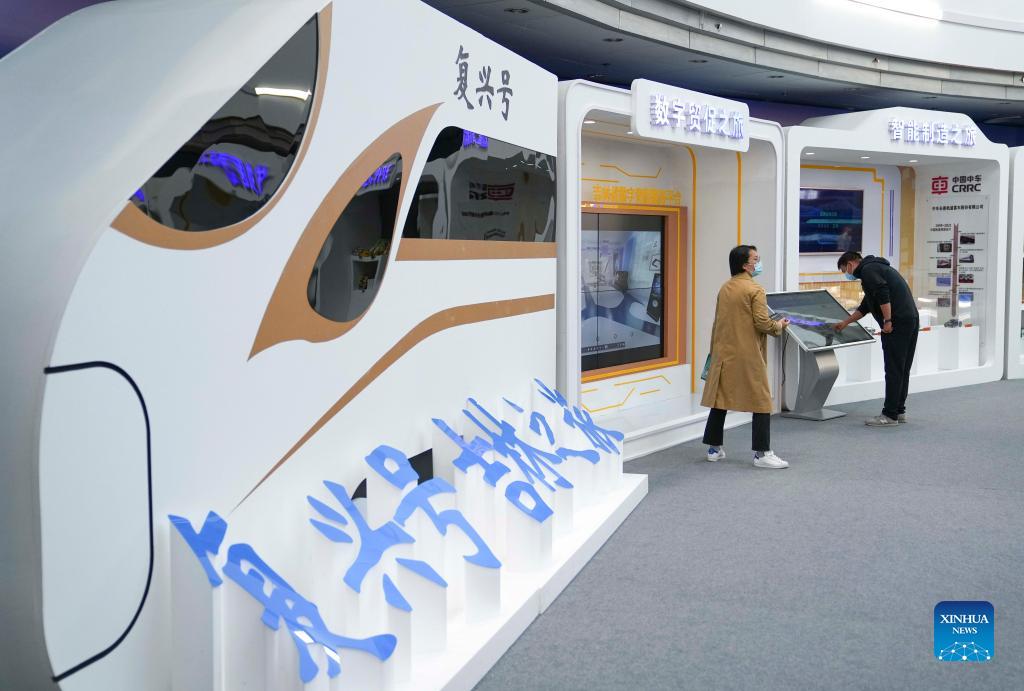 People visit the 13th China-Northeast Asia Expo in Changchun, northeast China's Jilin Province, on Sept. 23, 2021. The 13th China-Northeast Asia Expo is held online and offline from Sept. 23 to 27 in Changchun, capital city of northeast China's Jilin Province. (Xinhua/Xu Chang)