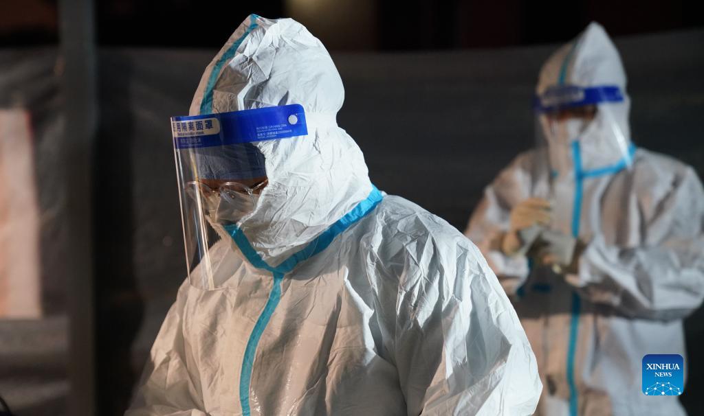 Medical workers prepare to work at a COVID-19 testing site in Harbin, northeast China's Heilongjiang Province, Sept. 22, 2021. Harbin, with a population of more than 10 million, launched citywide nucleic acid testing on Tuesday afternoon and plans to complete the campaign by the end of Thursday, according to the city's COVID-19 prevention and control headquarters. (Xinhua/Wang Song)
