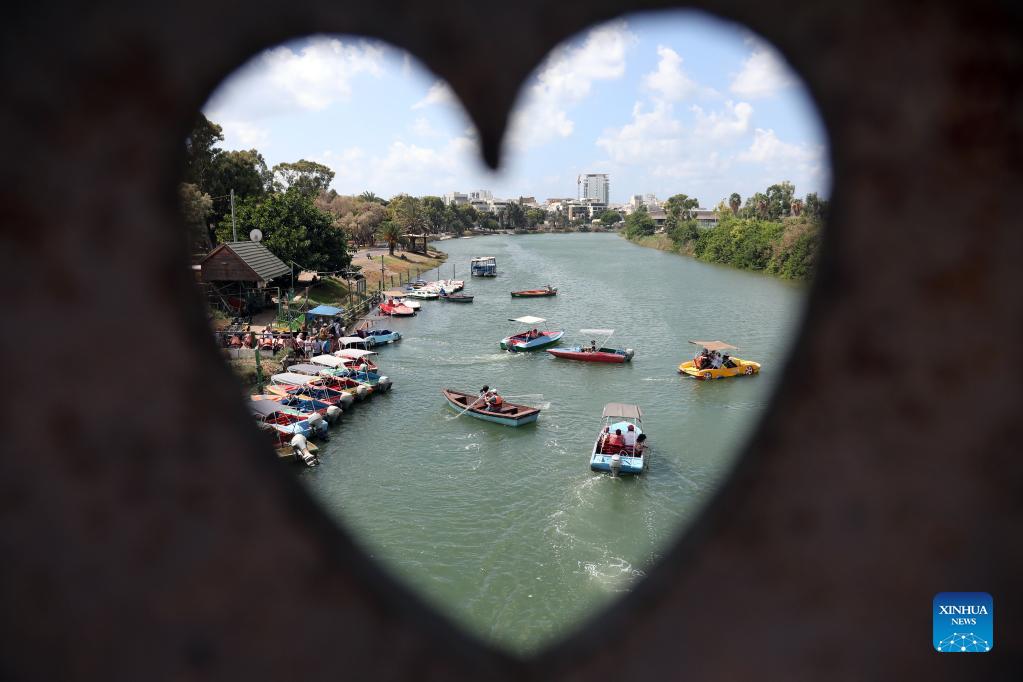 People enjoy themselves at Hayarkon Park during the week-long Sukkot holiday in Tel Aviv, Israel, on Sept. 23, 2021. (Gideon Markowicz/JINI via Xinhua)