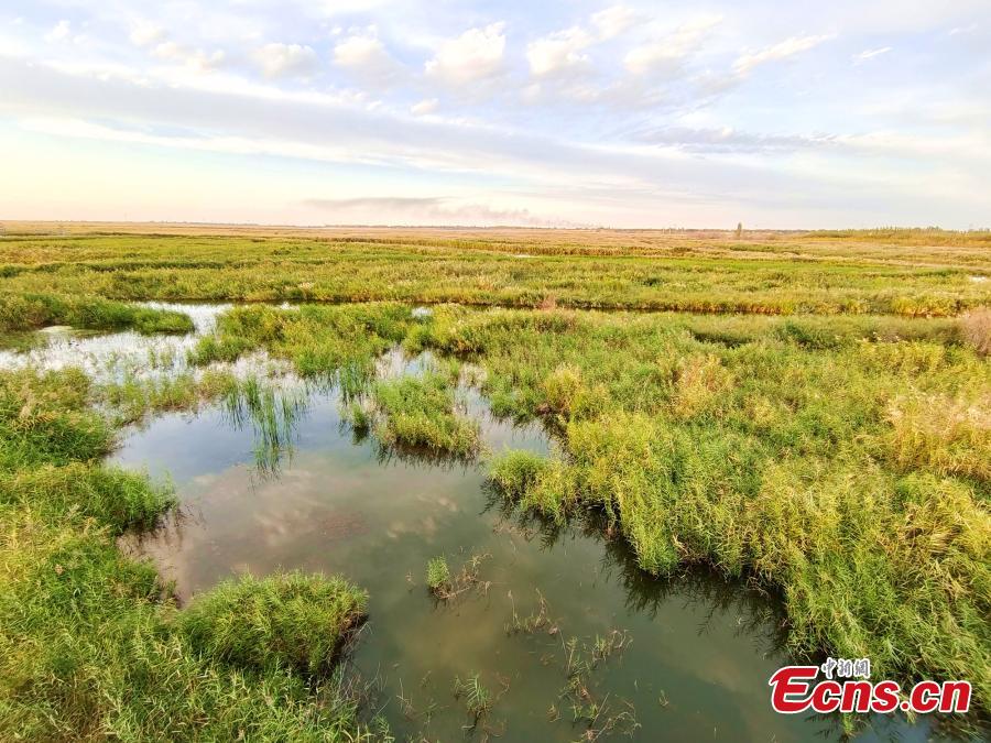 Covered with reeds and embellished with Tamarix ramosissima shrubs, the Manas national wetland park in northwest China's Xinjiang Uygur Autonomous Region is full of senses of autumn, Sept. 23, 2021. (China News Service/Shi Yujiang)