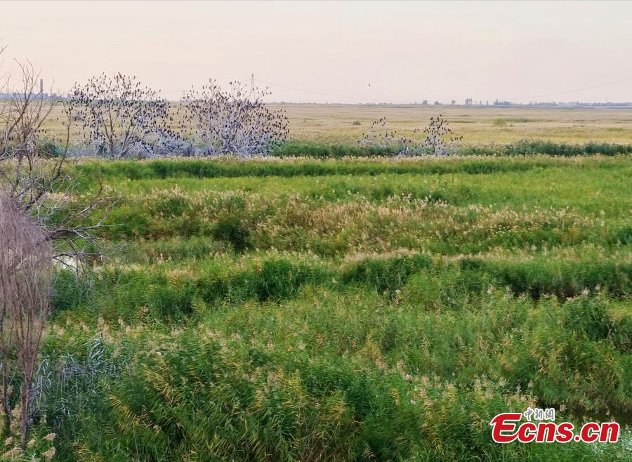 Covered with reeds and embellished with Tamarix ramosissima shrubs, the Manas national wetland park in northwest China's Xinjiang Uygur Autonomous Region is full of senses of autumn, Sept. 23, 2021. (China News Service/Shi Yujiang)