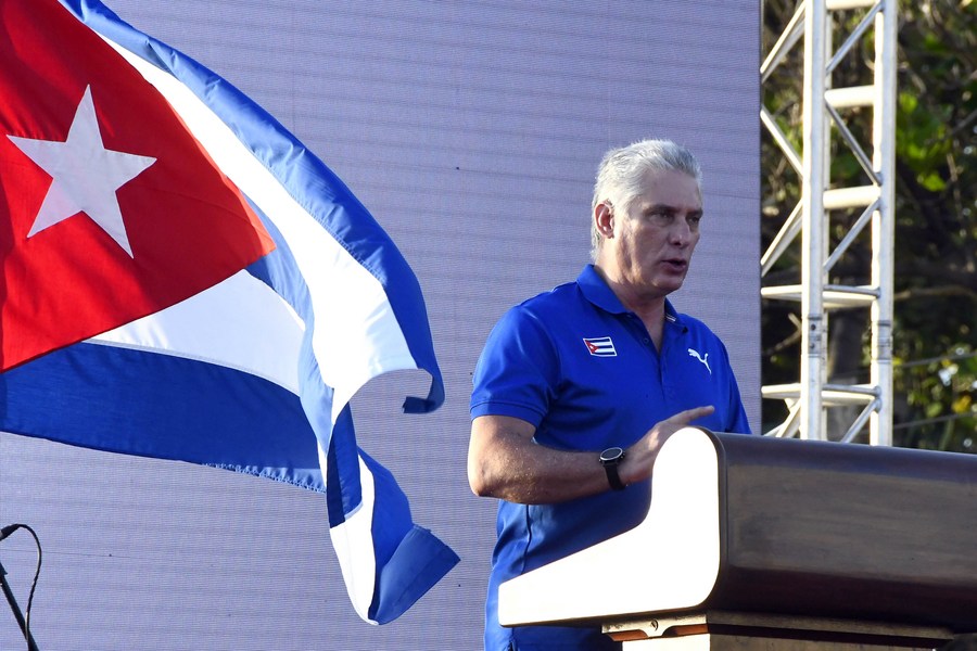 UNITED NATIONS, Sept. 24 (Xinhua) -- Cuban President Miguel Diaz-Canel on Thursday condemned the U.S. foreign policy, noting "a dangerous international schism" headed by Washington is being promoted.