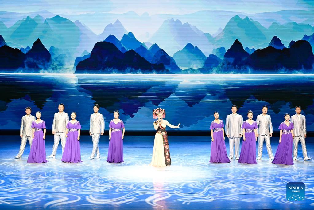 Artists perform at the closing gala of the sixth ethnic minority art festival in Beijing, capital of China, Sept. 24, 2021. The festival, which kicked off on Aug. 31, concluded here on Friday. (Xinhua/Li Xiang)