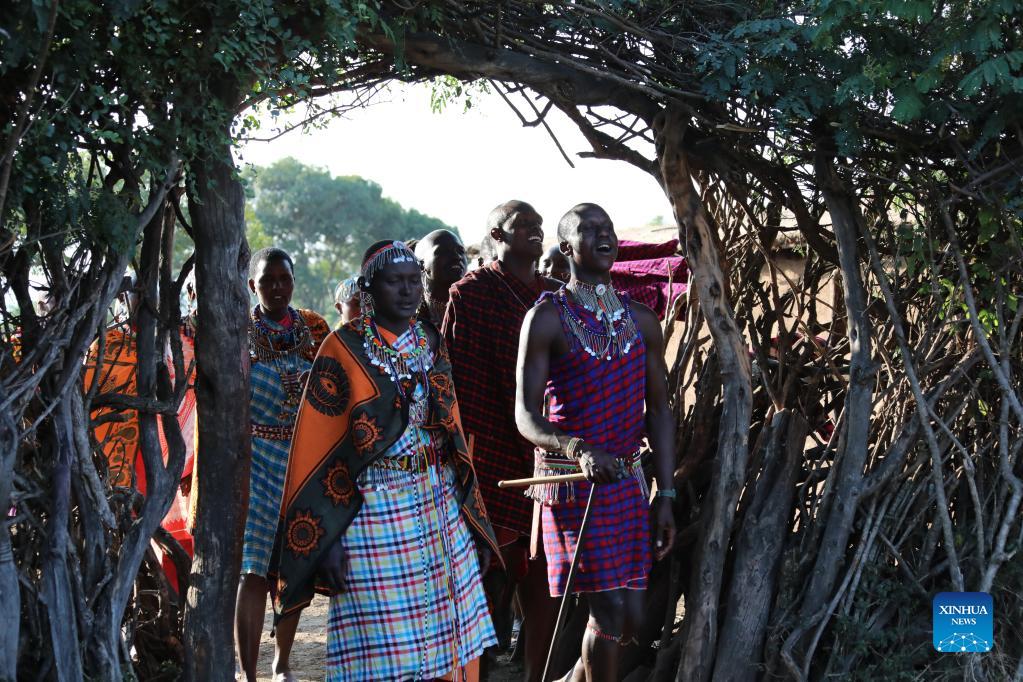 Maasai people perform at Maasai tribe near the Maasai Mara National Reserve, Kenya, Aug. 29, 2021. (Xinhua/Dong Jianghui)