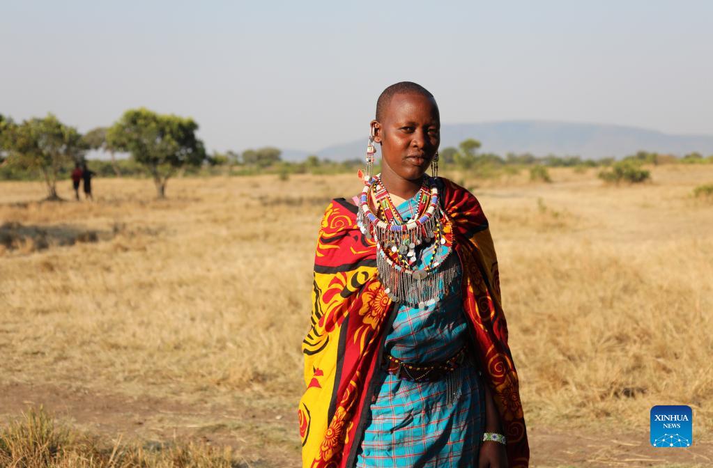 A Maasai woman is seen at Maasai tribe near the Maasai Mara National Reserve, Kenya, Aug. 29, 2021. (Xinhua/Dong Jianghui)