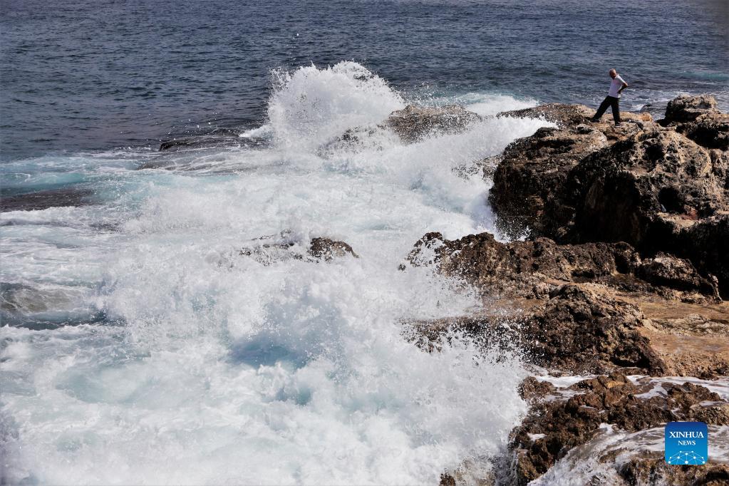 Waves hit the coast in Beirut, Lebanon, on Sept. 23, 2021. (Xinhua/Liu Zongya)