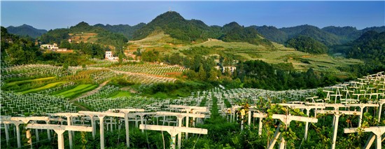 Photo shows a kiwifruit plantation in Xiuwen county, southwest China's Guizhou province. (Photo courtesy of the interviewee)