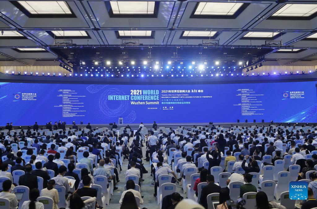 The 2021 World Internet Conference Wuzhen Summit opens in Wuzhen, east China's Zhejiang Province, Sept. 26, 2021. (Xinhua/Ding Hongfa)