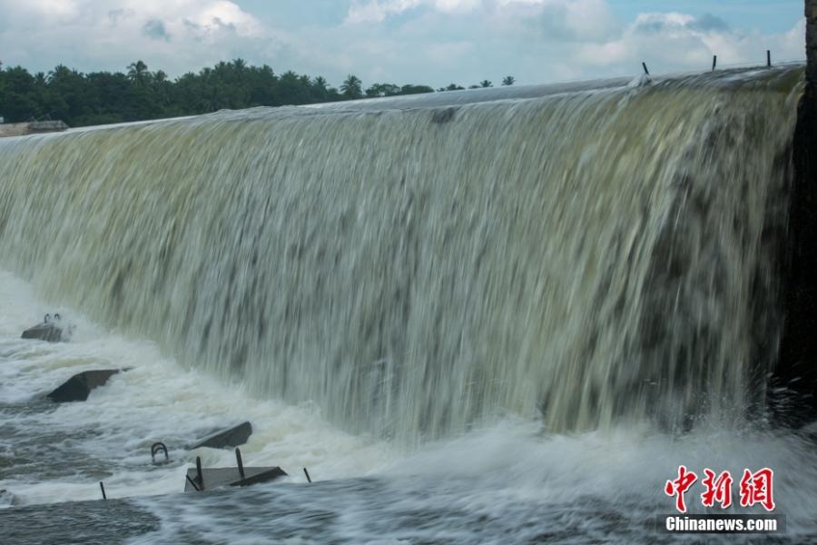 Magnificent waterfall appears on Wanquan River Dam on Sept. 25, 2021, after it rained for days in south China’s Hainan Province. (China News Service/Meng Zhongde)