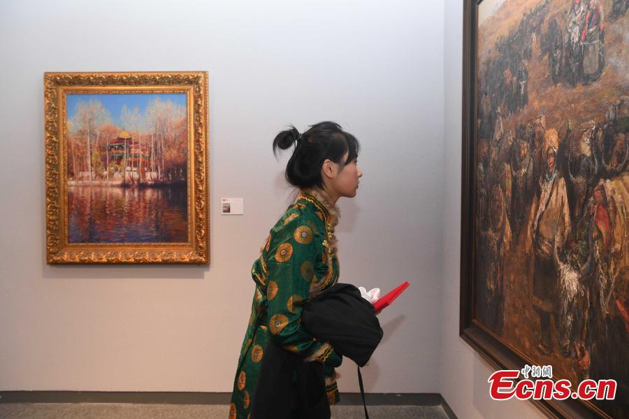 The 4th oil painting exhibition displaying the magnificent landscape and local people's life in Tibet was kicked off on Sunday. The 10-day event will display more than 80 paintings altogether.