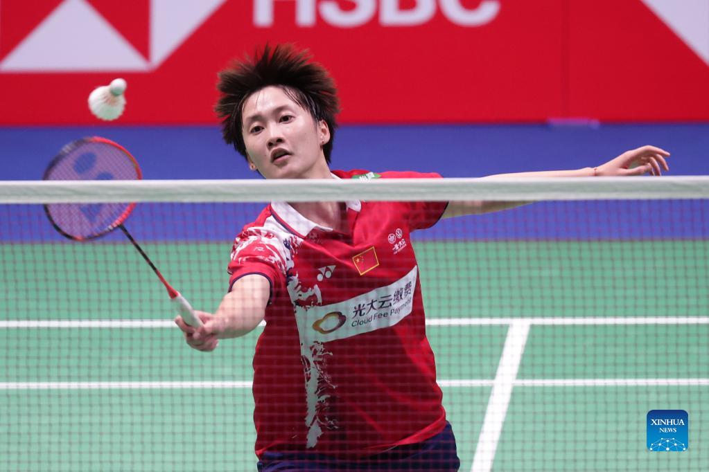 China's Chen Yufei competes against India's Aditi Bhatt in the women's singles competition during the group A match between China and India at Badminton Surdiman Cup 2021 in Vantaa, Finland, Sept. 27, 2021. (Photo by Matti Matikainen/Xinhua)