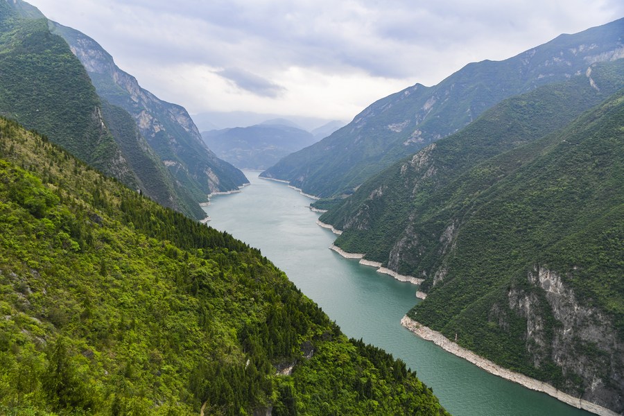 Photo taken on April 23, 2021 shows the view of Qutang Gorge, one of the Three Gorges on the Yangtze River, in southwest China's Chongqing Municipality. (Xinhua/Wang Quanchao)