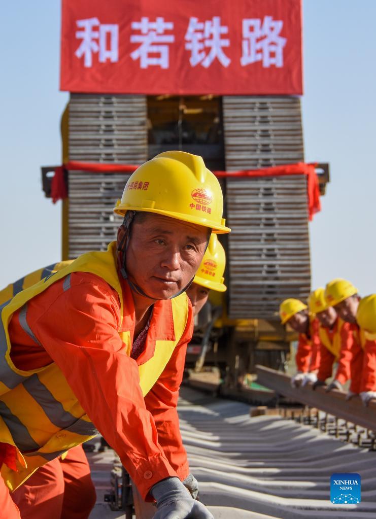 Track-laying work completed for major railway in China's Xinjiang (3)