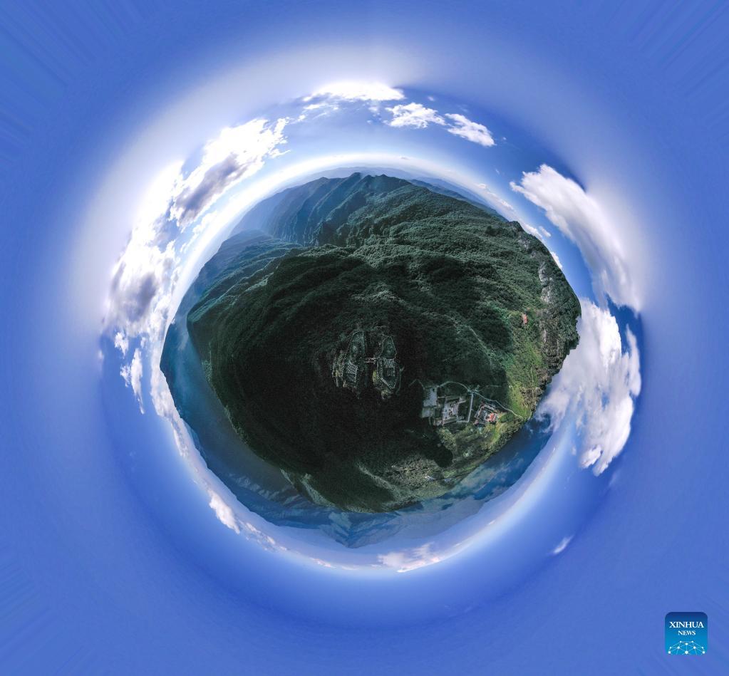 Aerial photo taken on Sept. 27, 2021 shows a panoramic view of Mount Fanjing in Tongren City, southwest China's Guizhou Province. Boasting rich natural resources and high vegetation coverage, Mount Fanjing was listed as a UNESCO World Natural Heritage Site in 2018. (Xinhua/Yang Wenbin)