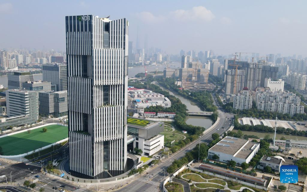 Aerial photo taken on Sept. 28, 2021 shows the headquarters building of the New Development Bank (NDB) in Shanghai, east China. A handover &move-in ceremony of the NDB headquarters building was held on Tuesday. (Xinhua/Fang Zhe)