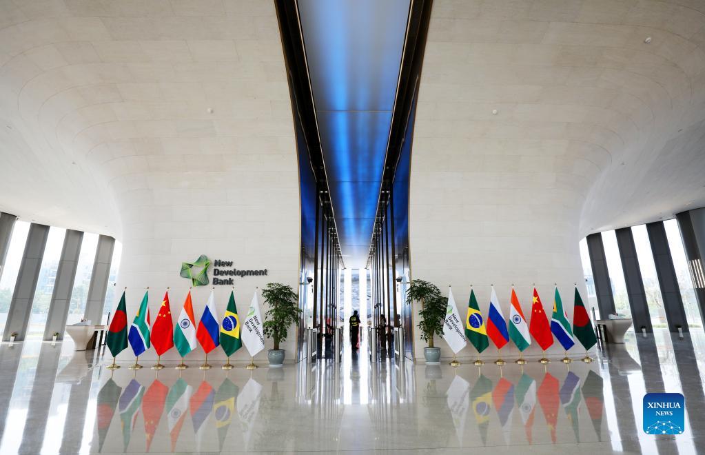 Photo taken on Sept. 28, 2021 shows the interior view of the headquarters building of the New Development Bank (NDB) in Shanghai, east China. A handover &move-in ceremony of the NDB headquarters building was held on Tuesday. (Xinhua/Fang Zhe)