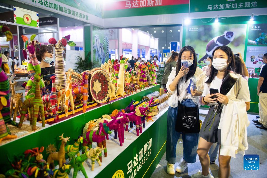 People visit the Second China-Africa Economic and Trade Expo in Changsha, capital of central China's Hunan Province, Sept. 28, 2021. The Second China-Africa Economic and Trade Expo opened to the public on Sunday. The four-day event, held both online and offline, has attracted nearly 900 enterprises from about 40 African countries and China, according to the organizers. Since its launch in 2019, the expo has served as a major platform for strengthening economic and trade cooperation between China and African countries. (Xinhua/Chen Sihan)