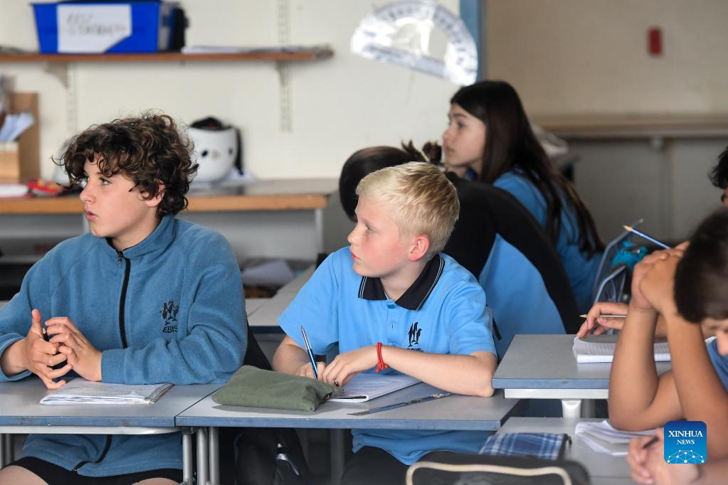 Students attend a Chinese class at Evans Bay Intermediate School in Wellington, New Zealand, Sept. 27, 2021. The opening reception of New Zealand Chinese Language Week was held on Monday evening at the Beehive, the Executive Wing of the parliamentary complex in Wellington. From Sunday to Saturday, New Zealand will host a variety of colorful activities such as learning Chinese language and Chinese Kungfu, enjoying Chinese folk music, experiencing Chinese cuisine, Chinese calligraphy workshops, and Chinese lion dance performances. (Xinhua/Guo Lei)