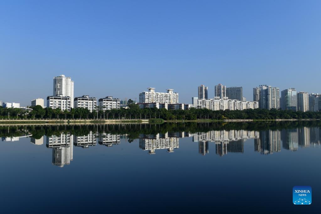 Photo taken on Sept. 29, 2021 shows a view of Nanhu Lake in Nanning, south China's Guangxi Zhuang Autonomous Region. (Xinhua/Lu Boan)