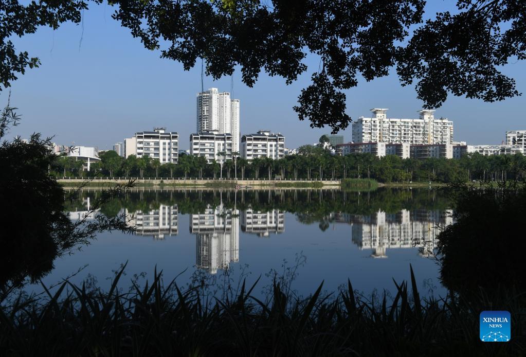Photo taken on Sept. 29, 2021 shows a view of Nanhu Lake in Nanning, south China's Guangxi Zhuang Autonomous Region. (Xinhua/Lu Boan)