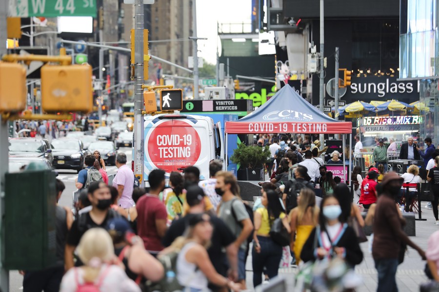 Photo taken on Aug. 31, 2021 shows a mobile COVID-19 testing site in New York, the United States. (Xinhua/Wang Ying)