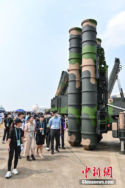 Teenagers from Hong Kong and Macao SAR visit the static display area in the 13th China International Aviation and Aerospace Exhibition in the southern Chinese city of Zhuhai, Guangdong Province, Sept. 29, 2021. (China News Service/Chen Jimin)