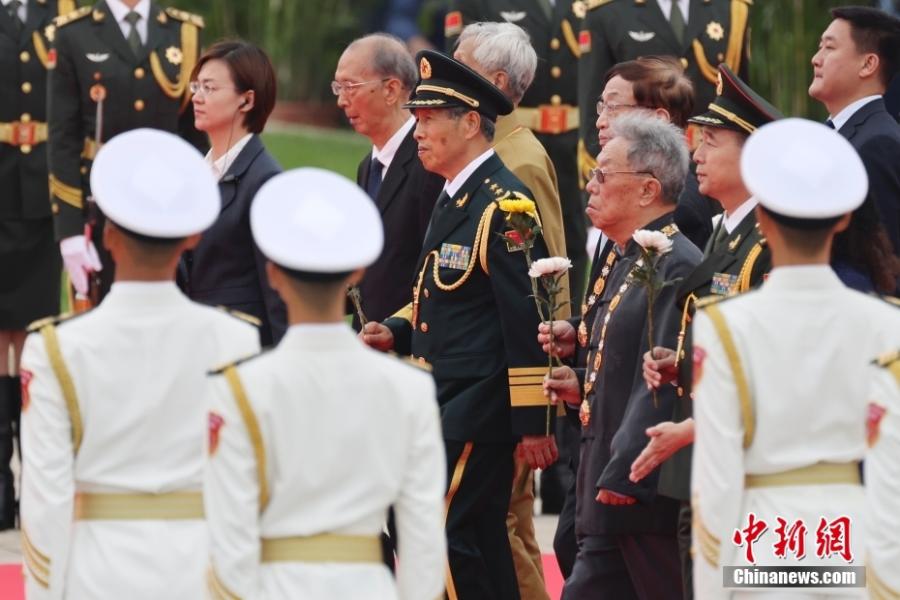 A commemorative ceremony to pay tribute to the Monument to the People's Heroes is held at Tiananmen Square in Beijing, capital of China, Sept. 30, 2021, the 8th Martyrs' Day. (China News Service/Sheng Jiapeng)