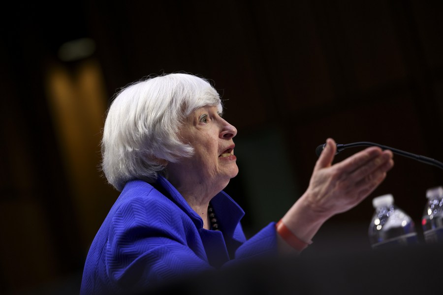 U.S. Treasury Secretary Janet Yellen testifies during a Senate Banking, Housing, and Urban Affairs Committee hearing in Washington, D.C., the United States, on Sept. 28, 2021. (Kevin Dietsch/Pool via Xinhua)