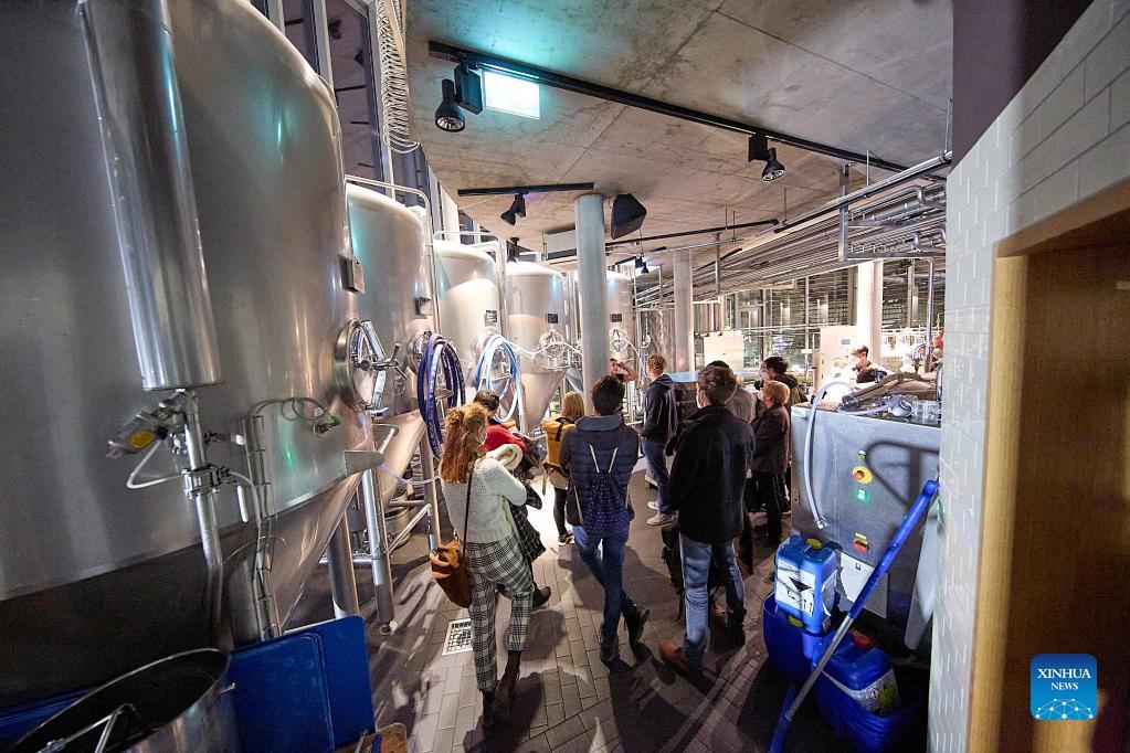 People visit the Ottakringer Brewery in Vienna, Austria, on Oct. 2, 2021. The Ottakringer Brewery was transformed into a museum for one night to greet visitors as part of the Long Night of Museums on Saturday. Around 640 museums, galleries, and cultural institutions presented their collections and exhibitions during the Long Night of Museums. (Photo by Georges Schneider/Xinhua)