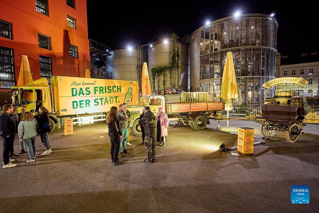 People visit the Ottakringer Brewery in Vienna, Austria, on Oct. 2, 2021. The Ottakringer Brewery was transformed into a museum for one night to greet visitors as part of the Long Night of Museums on Saturday. Around 640 museums, galleries, and cultural institutions presented their collections and exhibitions during the Long Night of Museums. (Photo by Georges Schneider/Xinhua)