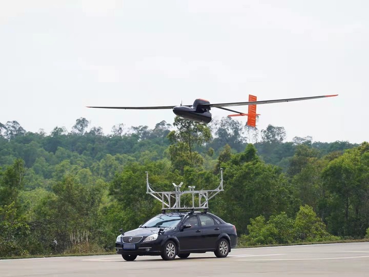 The unmanned aerial vehicle, Feng Ru 3-100, developed by China's Beihang University, takes off in Xuchang, central China's Henan Province, on May 21, 2021. (Beihang University/Handout via Xinhua)