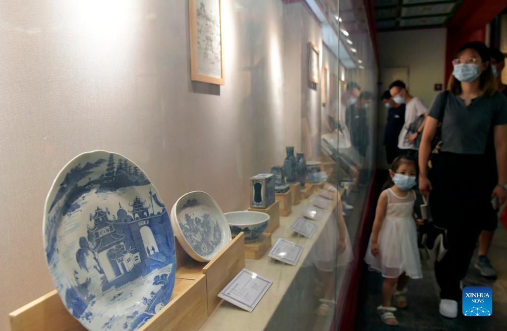 People visit an exhibition hall at the Tengwang Pavilion scenic spot in Nanchang, capital of east China's Jiangxi Province, Oct. 5, 2021. (Xinhua/Peng Zhaozhi)
