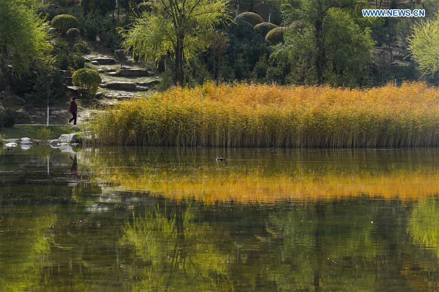 Citizens visit the Baishatan park in Xining, northwest China's Qinghai Province, Oct. 12, 2020. In recent years, Xining has continuously increased the green area at urban area to improve city environment. (Xinhua/Wu Gang)