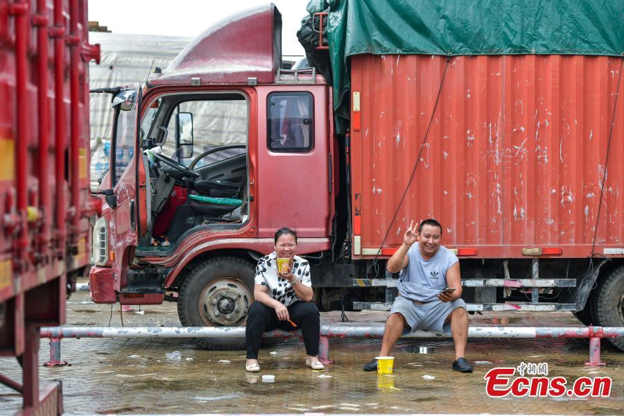 A couple is delayed at the port in Haikou City, south China's Hainan Province, Oct. 7, 2021. (Photo: China News Service/Luo Yunfei)