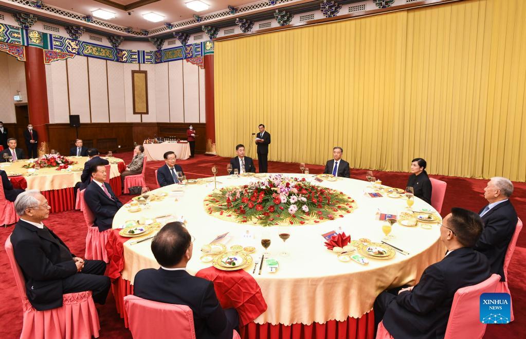 A reception marking the 110th anniversary of the Revolution of 1911 is held at the auditorium of the Chinese People's Political Consultative Conference (CPPCC) National Committee in Beijing, capital of China, Oct. 9, 2021. Wang Yang, a member of the Standing Committee of the Political Bureau of the Communist Party of China Central Committee and chairman of the CPPCC National Committee, attended the event. (Xinhua/Rao Aimin)