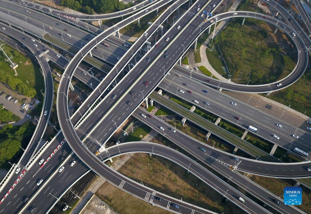 Aerial photo taken on April 29, 2020 shows an overpass in Wuhan, capital of central China's Hubei Province. The 1911 Revolution, starting with gunfire in Wuchang, now part of central China's Wuhan City, on Oct. 10, 1911, was the national democratic revolution launched by Chinese revolutionaries represented by Dr. Sun Yat-sen. The revolution brought down the Qing government and brought about the establishment of Asia's first republic. (Xinhua/Cheng Min)