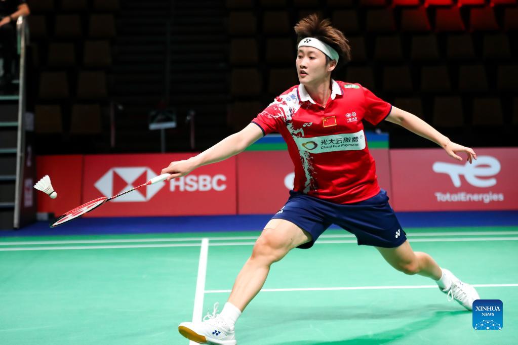 China's Chen Yufei competes in the women's singles match against Malaysia's Eoon Qi Xuan during the group D match between China and Malaysia at Uber Cup badminton tournament in Aarhus, Denmark, Oct. 10, 2021. (Xinhua/Zhang Cheng)