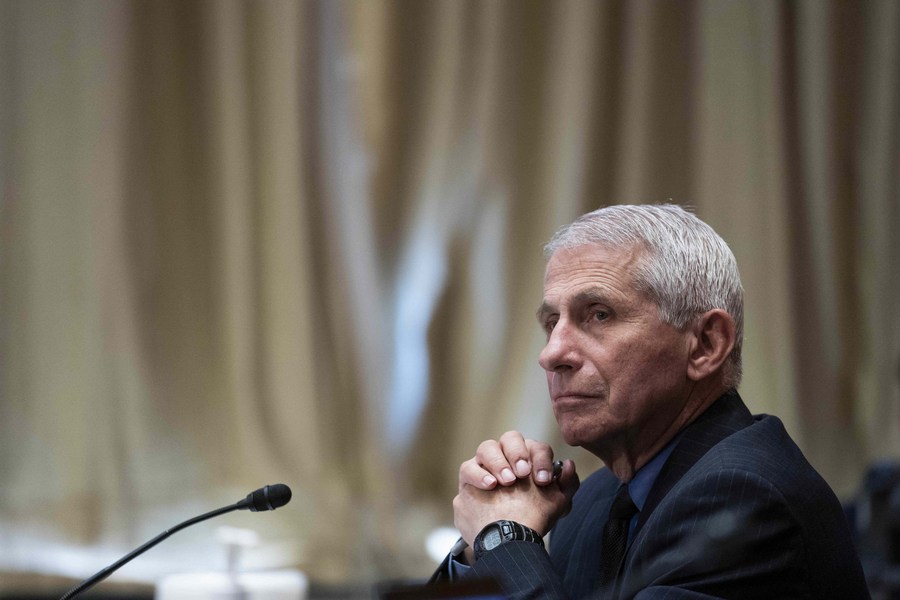 Anthony Fauci, director of the U.S. National Institute of Allergy and Infectious Diseases, listens during a hearing of Senate Appropriations Subcommittee titled "National Institutes of Health's FY22 Budget and the State of Medical Research" in Washington, D.C., the United States, on May 26, 2021. (Sarah Silbiger/Pool via Xinhua)