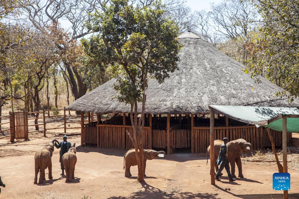 Keepers take care of baby elephants at an elephant nursery in Lilayi, south of Lusaka, Zambia, on July 30, 2021. While elephant poaching causes decimation to the species' population and is widely blamed, another aspect of poaching also requires more attention -- that is the bereaved baby elephants. (Photo by Martin Mbangweta/Xinhua)
