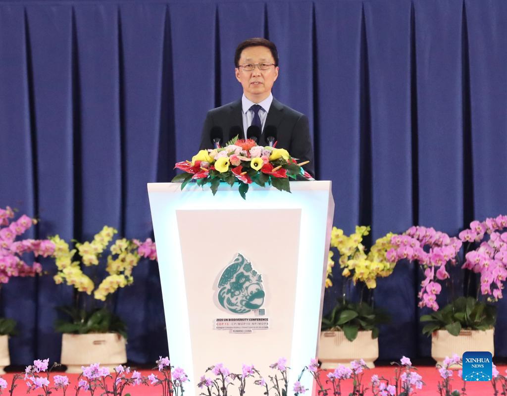 Han, also a member of the Standing Committee of the Political Bureau of the Communist Party of China Central Committee, made the remarks while attending the leaders' summit of the 15th meeting of the Conference of the Parties to the Convention on Biological Diversity (COP15) in Kunming, the capital of southwest China's Yunnan Province.