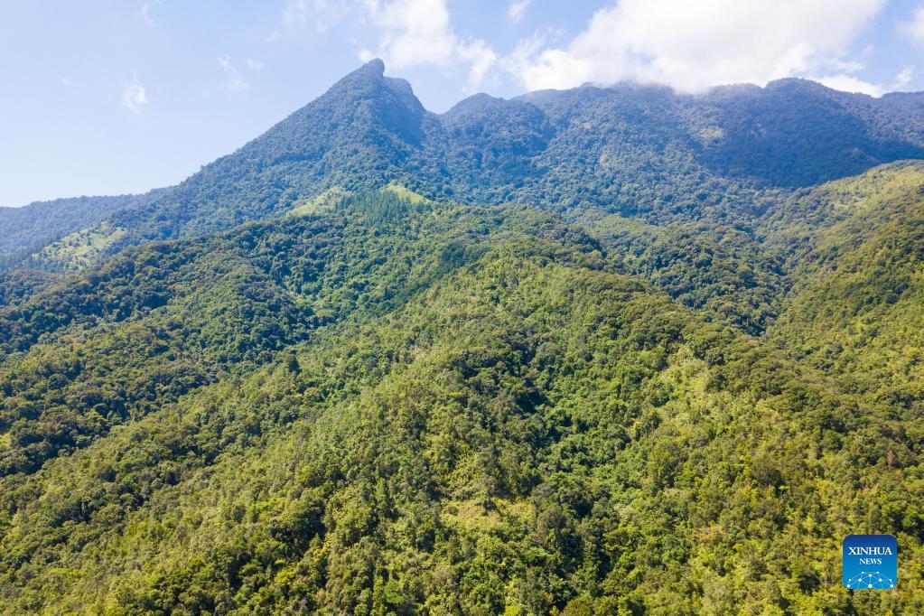 Aerial photo taken on Sept. 29, 2021 shows the view of the Hainan Tropical Rainforest National Park in south China's Hainan Province. The Hainan Tropical Rainforest National Park in south China's Hainan Province boasts one of the most concentrated, best preserved and largest contiguous tropical rainforests in China. The park covers nine cities and counties, with a total area of 4,400 square km, or about one-seventh of Hainan Island's land area. It is an important part of the world's tropical rainforest and a key area for biodiversity conservation in China. (Xinhua/Pu Xiaoxu)