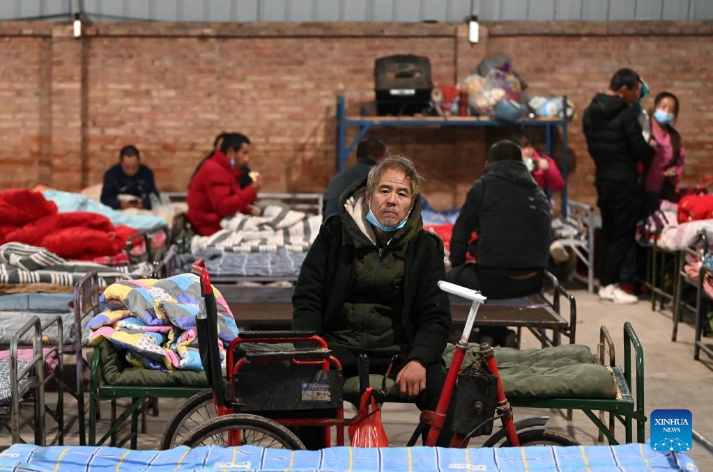 Residents stricken by the flood rest at a temporary relocation site in Dali County of Weinan City, northwest China's Shaanxi Province, Oct. 11, 2021. Nearly 240,000 people were affected by the floods due to continuous downpours in Dali County of Shaanxi Province. So far, more than 25,000 people have been evacuated to temporary relocation sites offering accommodation and medical services. (Xinhua/Liu Xiao)