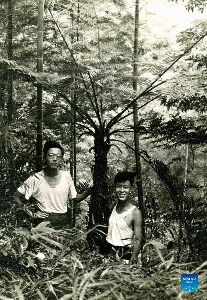 File photo taken in 1963 shows Yin Kaipu (R) working with his colleague during a vegetation investigation in Xuyong County, southwest China's Sichuan Province. Yin, a 78-year-old renowned ecologist in China, has been dedicating himself to biodiversity protection for more than six decades. After graduating from school in 1960, Yin worked at the Chengdu Institute of Biology of the Chinese Academy of Sciences (CAS), mainly engaging in biological resources investigation and conservation. In 1978, Yin proposed to establish the Jiuzhaigou and Yading nature reserves to prevent them from being destroyed. Nowadays, Jiuzhaigou and Daocheng Yading have become famous scenic spots. (Yin Kaipu/Handout via Xinhua)