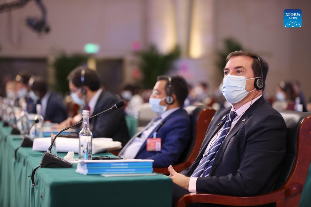 Participants attend the Ecological Civilization Forum of the first part of the 15th meeting of the Conference of the Parties to the Convention on Biological Diversity (COP15) in Kunming, southwest China's Yunnan Province, on Oct. 14, 2021. (Xinhua/Jin Liwang)