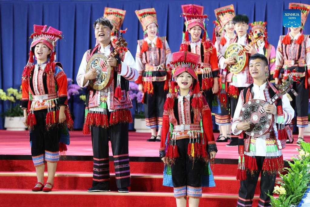 A performance is held at the opening ceremony of the Ecological Civilization Forum of the first part of the 15th meeting of the Conference of the Parties to the Convention on Biological Diversity (COP15) in Kunming, southwest China's Yunnan Province, on Oct. 14, 2021. (Xinhua/Jin Liwang)